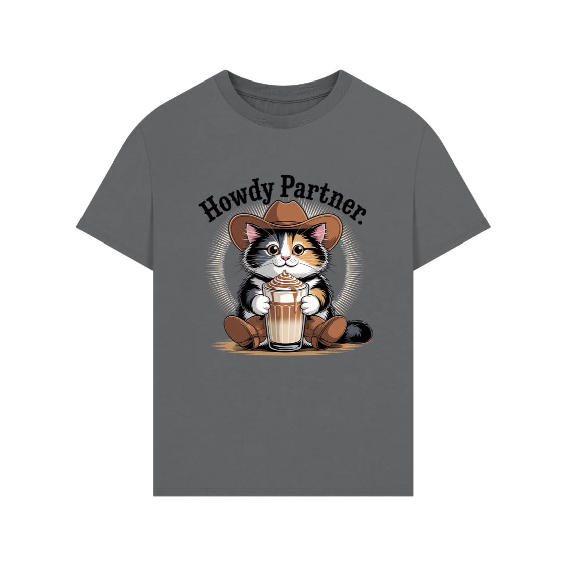 Howdy Partner Cat with Coffee Western Theme T-Shirt